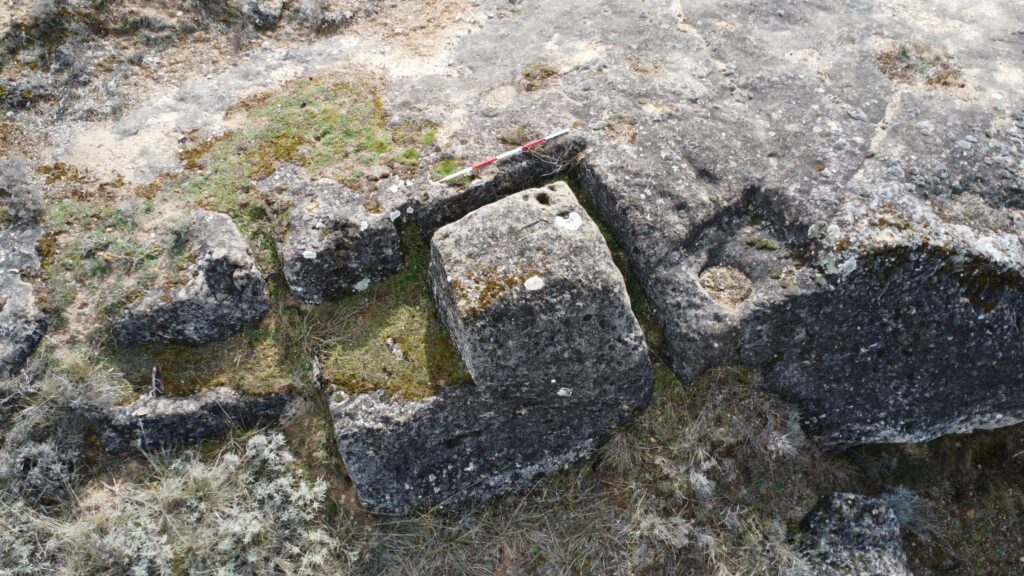 During the research project, up to 28 ashlar extraction areas have been documented in the surroundings of Huete in sandstone outcrops –a sedimentary rock very present in this territory. These exploitations have been organized into 11 distinct groups that show a significant volume of stone obtained, which speaks to the notable demand that existed for this material from nearby settlements for the construction of architectures over the centuries. This can be observed by visiting Huete, where remains of the castle, the walls, and multiple churches, palaces, or convents are preserved, as well as the Cerro de Alvar Fáñez site, a little more than one kilometer from the urban center.