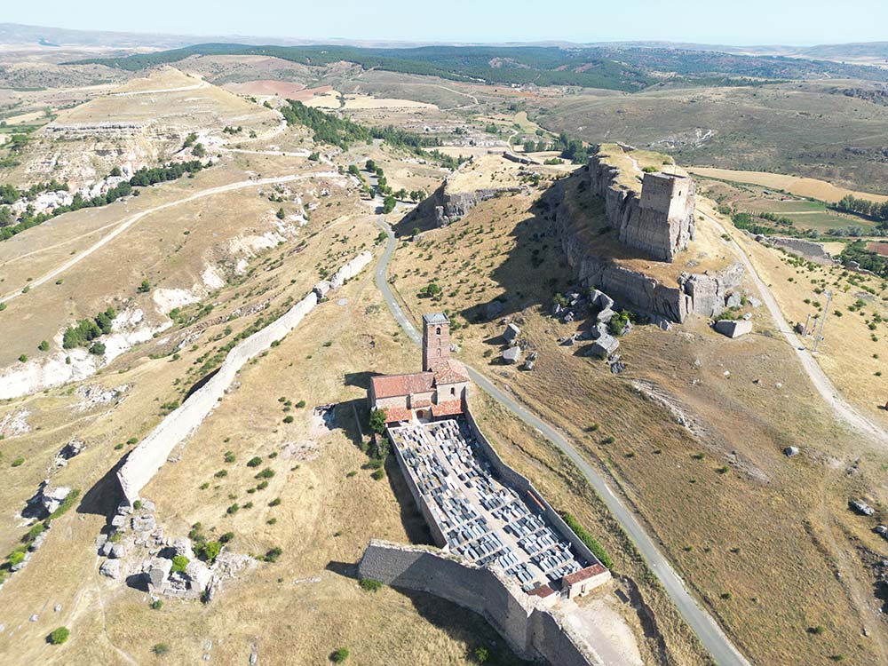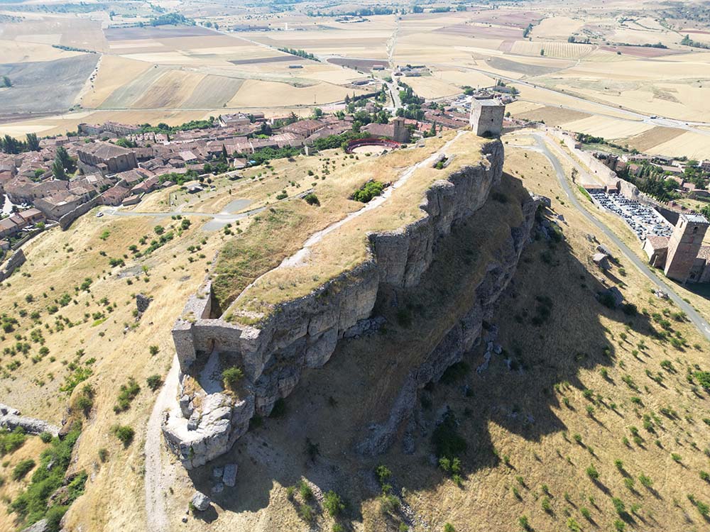 Las intervenciones arqueológicas realizadas en los últimos años en la población han revelado la existencia de estructuras ya existentes en época emiral en la parte superior del cerro donde se alza el castillo. Durante la época califal, con el desarrollo de los enclaves defensivos de la Marca Media, parece que se configuró una medina con desarrollo urbano en la ladera occidental del promontorio. En ella posiblemente sobresalieron las fortificaciones, como es indicio el gran torreón norte del castillo, ejecutado con técnicas andalusíes. Es difícil todavía precisar las arquitecturas que tienen un antecedente o una base islámica, ya que la ciudad tuvo continuidad tras la conquista castellana del siglo XII y se transformó en una villa dinámica con una comunidad en la que estuvieron presentes las tres religiones: cristianismo, judaísmo e islam. Según el Cantar de Mío Cid, Rodrigo Díaz de Vivar pasó por este espacio cuando marchó hacia el destierro y el texto se refiere a Atienza como «una peña muy fuerte».