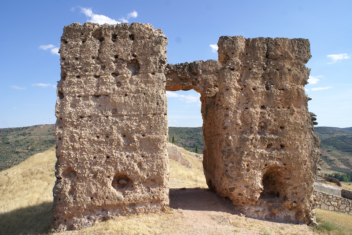 Los restos de este primitivo ḥiṣn podrían identificarse con las estructuras subsistentes en lo alto del cerro de Alcaraz, donde destacan dos torres de planta rectangular y fábrica de tapial. La victoria cristiana frente a los almohades en la batalla de las Navas de Tolosa (1212) permitió a los castellanos plantear la ofensiva de los territorios meridionales de la Mancha; en consecuencia, Alcaraz se rindió tras un largo asedio (1213).