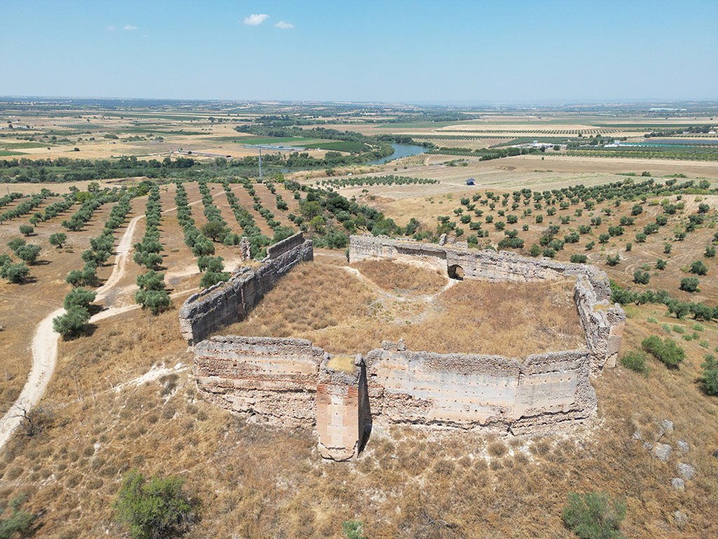 Materiales: argamasa de cal y cantos rodados, muro de tapia y ladrillos. Técnica: mampostería y tapial.