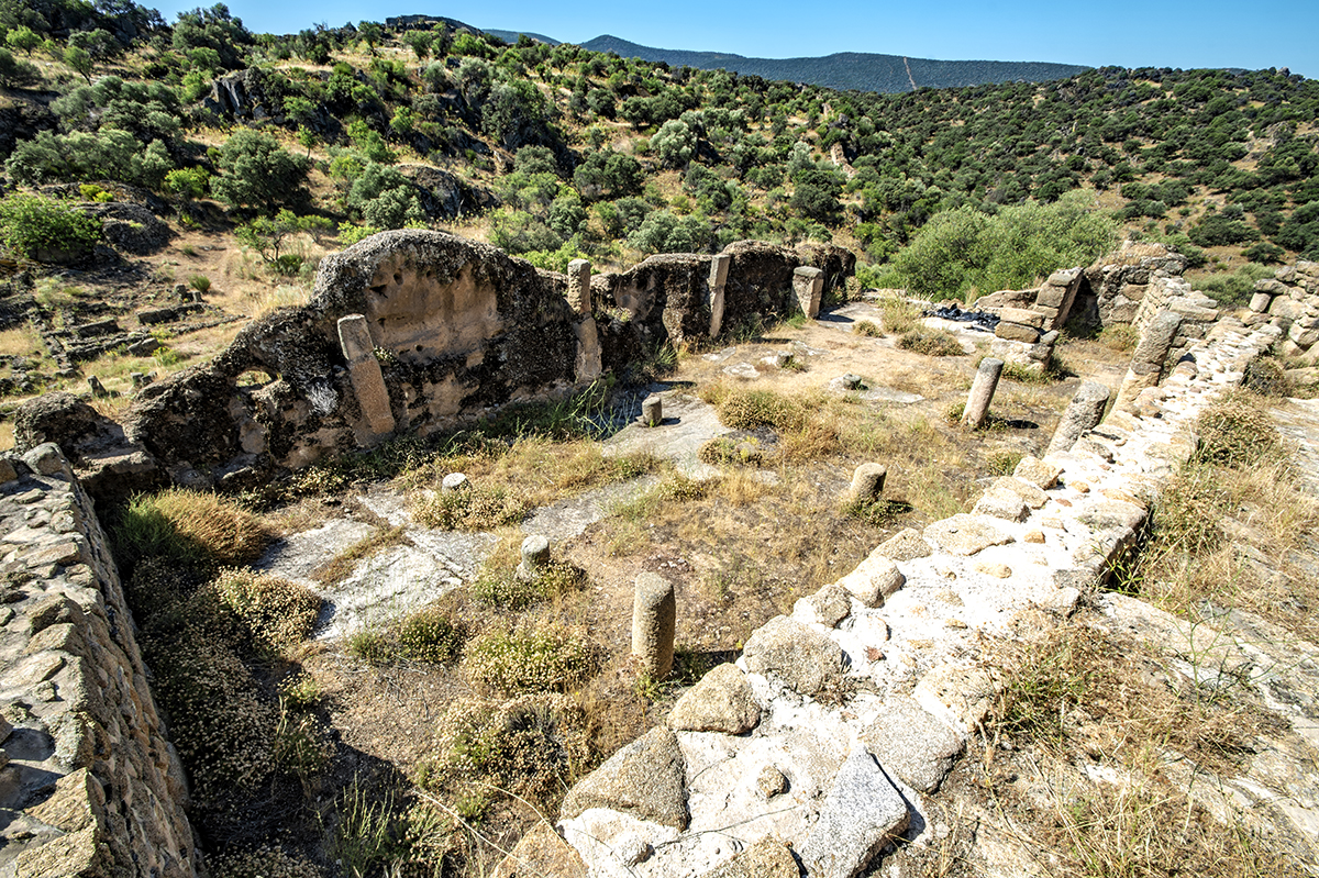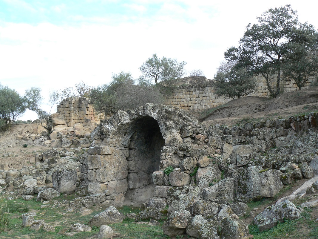 Además, los trabajos de excavación han documentado varias viviendas, entre las que destaca una de amplias proporciones en el área central, con un patio central y seis dependencias; un barrio extramuros con tenerías para el curtido de pieles, y donde se emplazan los baños vinculados al arroyo de la Mora, con las estructuras típicas de estos edificios andalusíes: salas fría, templada y caliente, una zona de vestuario con banco de piedra y leñera con restos del horno. También se conservan dos cementerios extramuros de los que destacan los cipos funerarios que solían colocarse verticalmente en las esquinas de algunas tumbas.