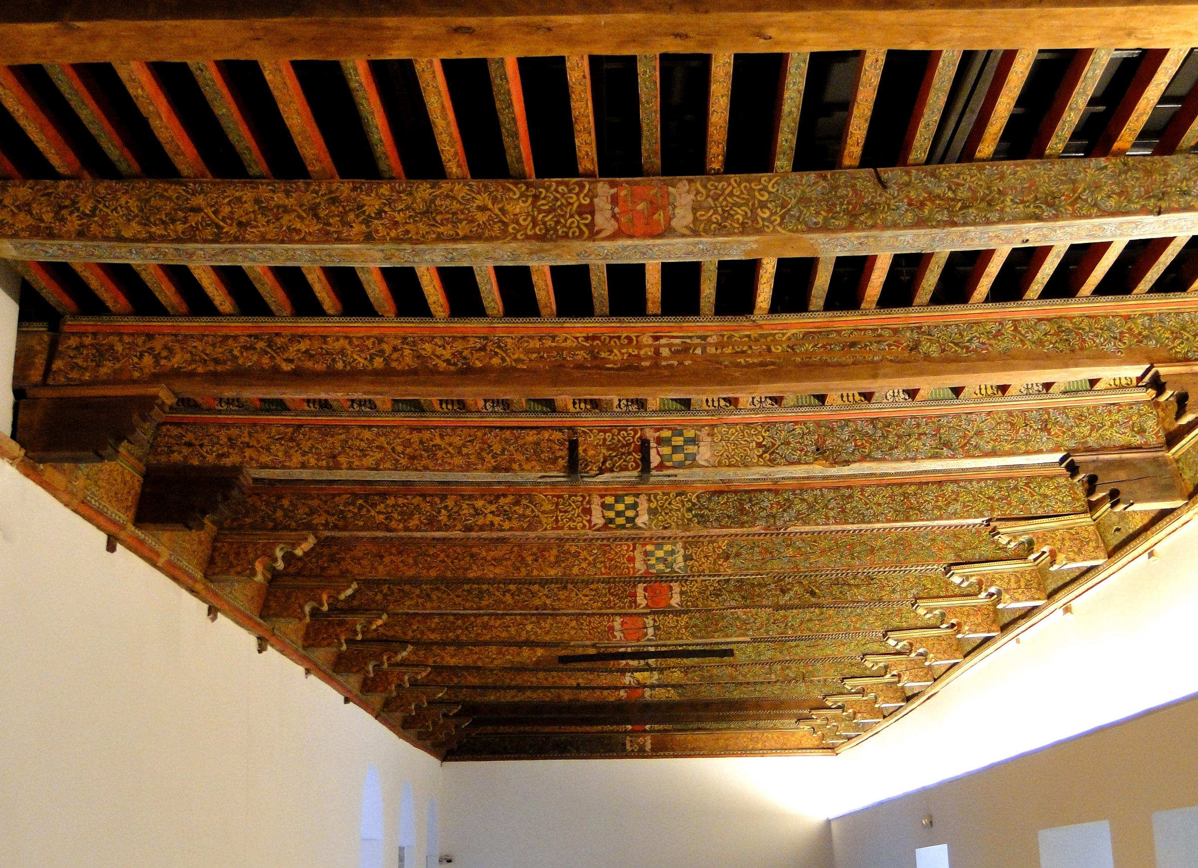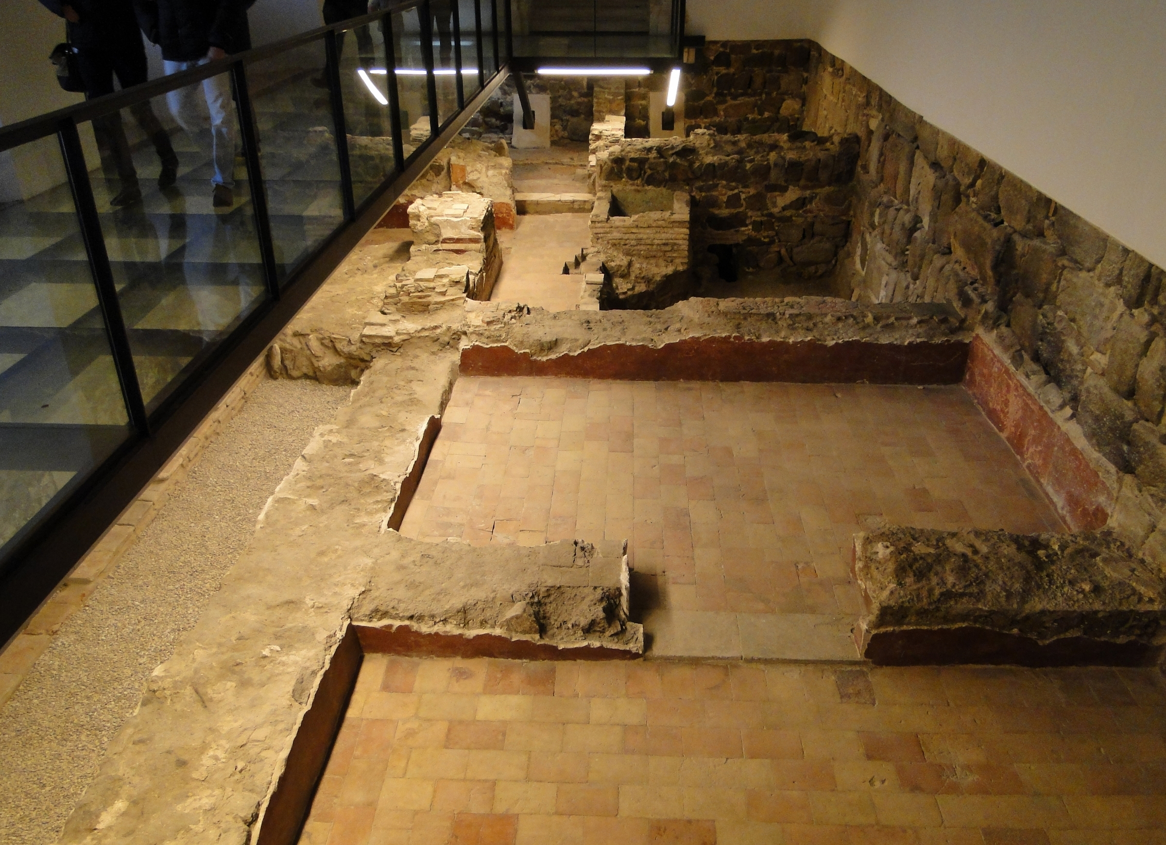 Por otro lado, los fragmentos de arquería recuperados en la galería norte del claustro han permitido reconstruir una arquería trífora (que conectaba patio central y estancia interiores) realizada mediante ladrillo y revestida de yeso. Cada uno de sus espacio, ejecutado mediante yeso, pintura (con materiales como lapislázuli), oro o placas de vidrio, contó con un repertorio iconográfico distinto: frentes (escenas de caza y bestiario de animales reales y fantásticos) e intradós (hexagramas con motivos zoomorfos).