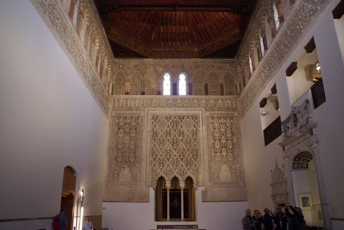 Además, la cultura andalusí pervivió varios siglos tras la conquista castellana de Toledo. Esto no fue únicamente por la presencia de población musulmana en la ciudad, sino que entre el resto de los habitantes de otros credos las formas de lo islámico también perduraron. Ejemplos de ello son las iglesias, conventos, sinagogas, casas nobles o palacios construidos bajo estéticas andalusíes, como la sinagoga de Samuel ha-Leví o el Taller del Moro, entre otros, en las que abundan los textos árabes, las ornamentaciones vegetales y geométricas en yeso o las techumbres realizadas en carpintería de lo blanco.