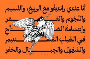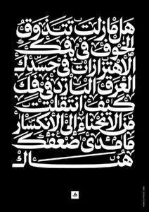 Sarkis also emphasizes the crucial role that diacritical marks, or harakat, play in Arabic typography. While in many cases, these marks are used for clarity, Sarkis often employs them for artistic effect. In his collaboration with Moroccan-Belgian poet Hind Eljadid, for example, he used excessive diacritical marks in a triptych piece named “The World Around Us” to create a sense of suffocation, visually mirroring the poem’s theme of feeling trapped in an abusive relationship. “Sometimes they are used for functional reasons… but often in my lettering work, they are used as an expression for aesthetic reasons,” he explains.