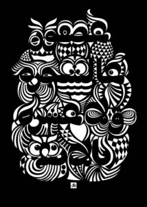 Sarkis tries to find a middle ground to blend traditional scripts with contemporary aesthetics. He describes his approach as a way to “look at all of this beauty that was lost throughout time and try to bring it back into a more contemporary voice.” This philosophy is evident in his lettering work, as is the case in “A Bird in the Hand,” where the lettering functions as an absence within the owl illustrations. Or “The Happiness Series,” which is as illegible as it is joyful, playful and colorful, making use of straight-edged vector illustrations.